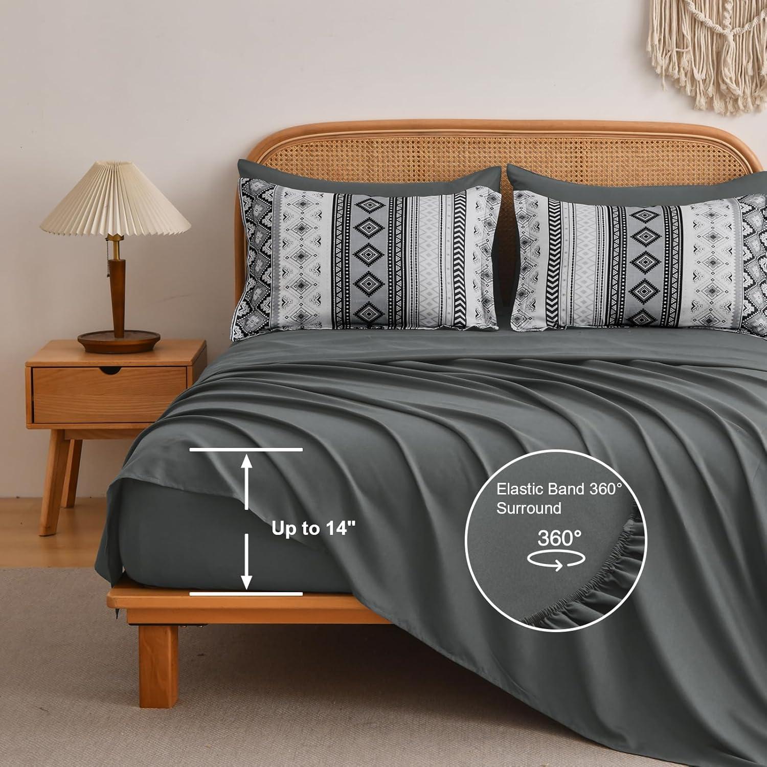 imageMybedsoul Brown Aztec Style Comforter Set 7 Pieces Queen Size Boho Bed in a Bag AllSeason Bedding Set with Sheets ampamp Pillow Shams Bohemian Geometric Striped PatternBlack Grey