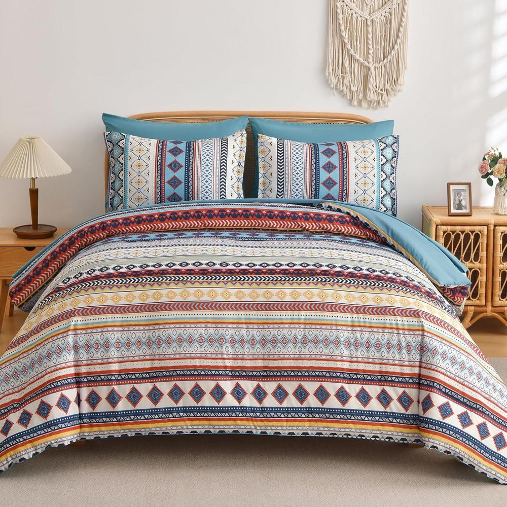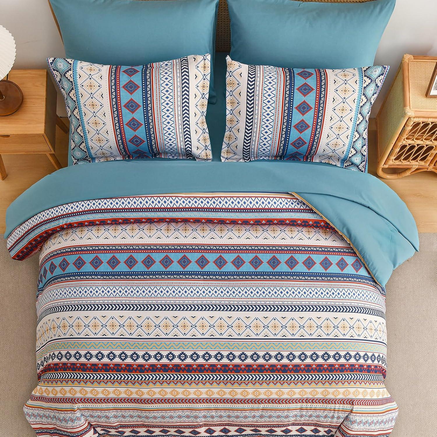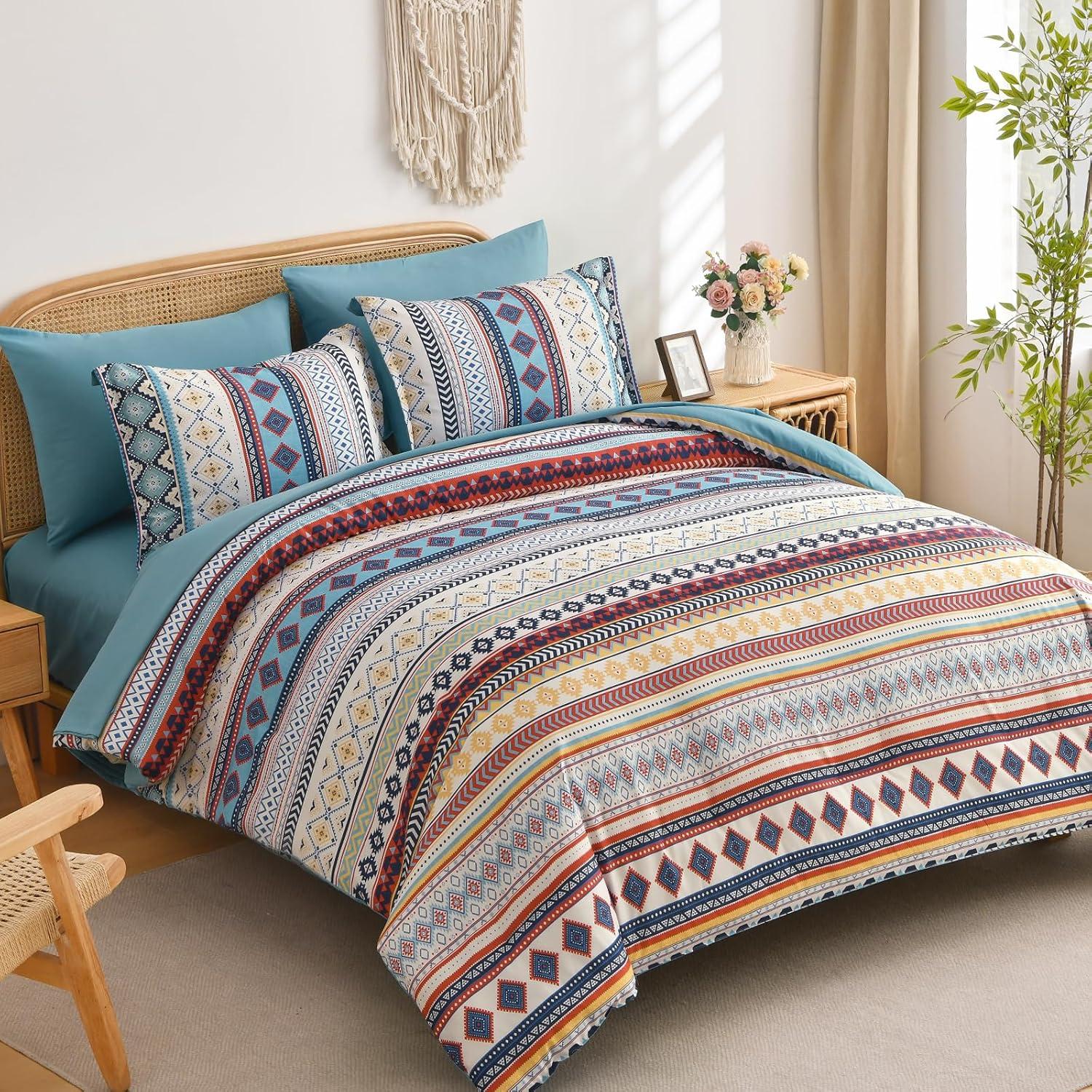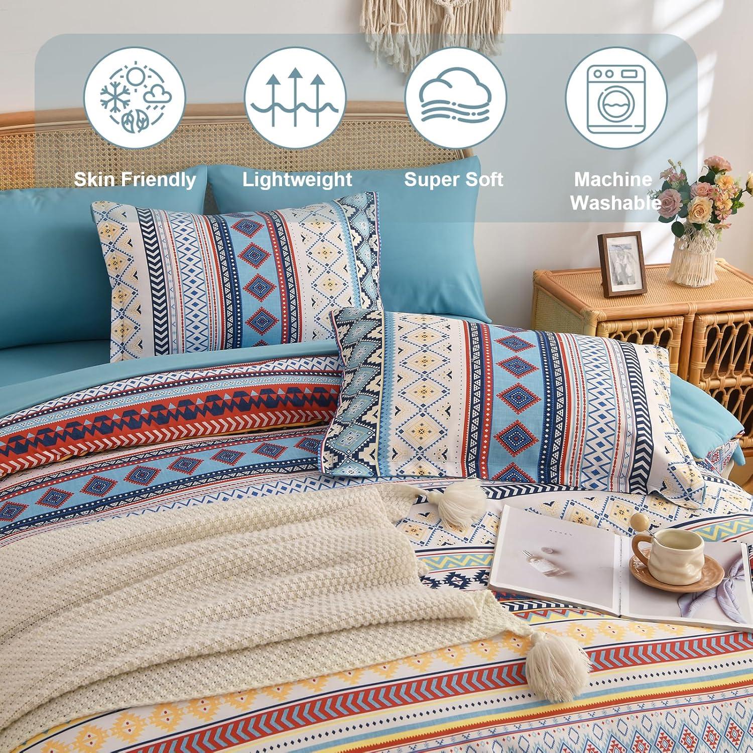 【Brown Aztec Pattern & Boho Design】: Featuring intricate Aztec-inspired prints and a relaxed boho aesthetic, this bedding set adds an artistic, global touch to your bedroom. The vibrant colors and ethnic motifs create a stylish and unique atmosphere.