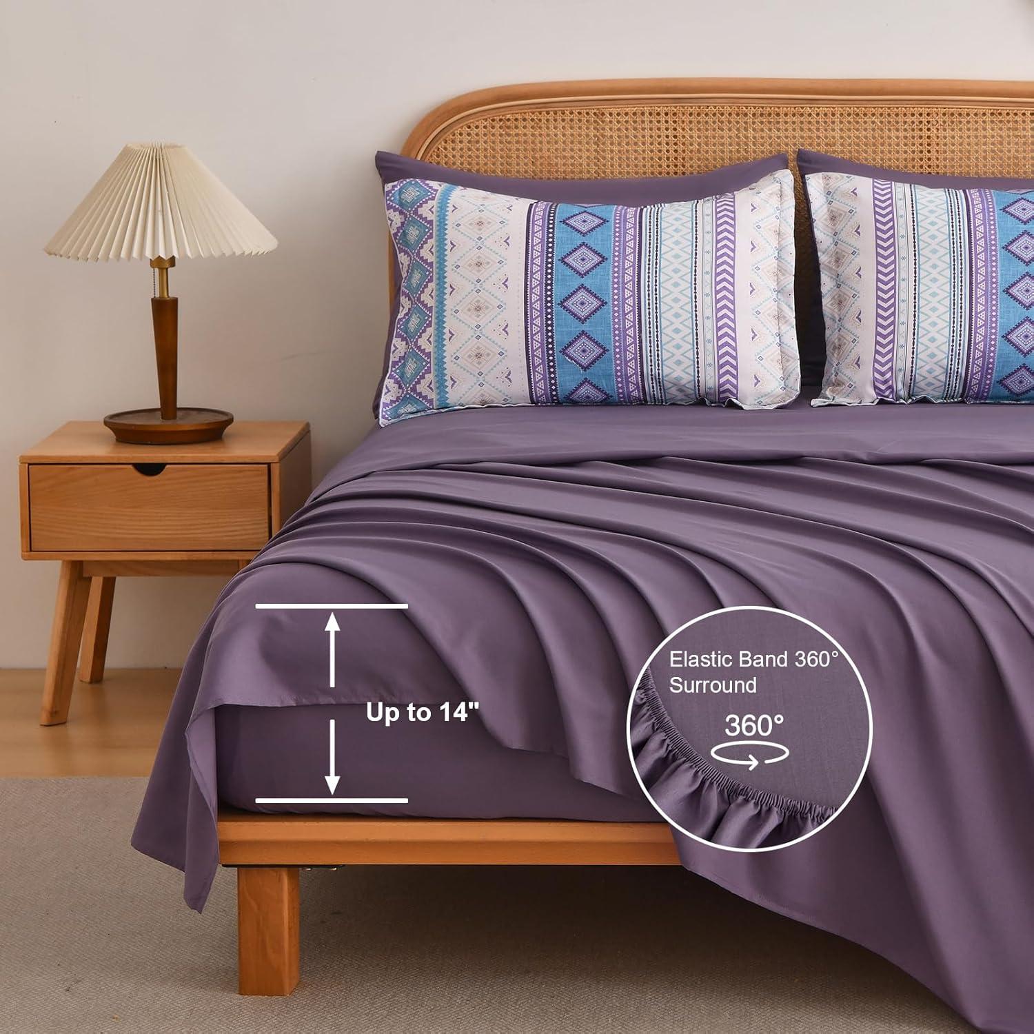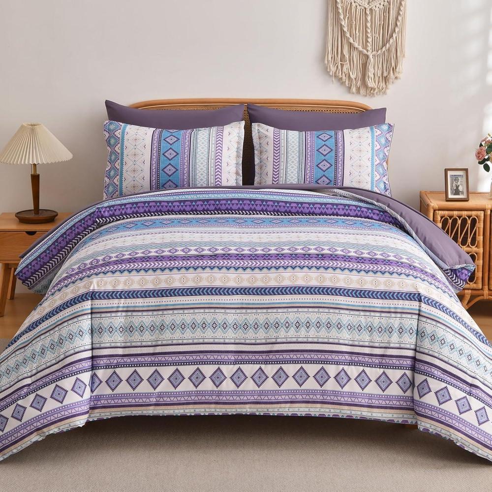 imageMybedsoul Brown Aztec Style Comforter Set 7 Pieces Queen Size Boho Bed in a Bag AllSeason Bedding Set with Sheets ampamp Pillow Shams Bohemian Geometric Striped PatternPurple